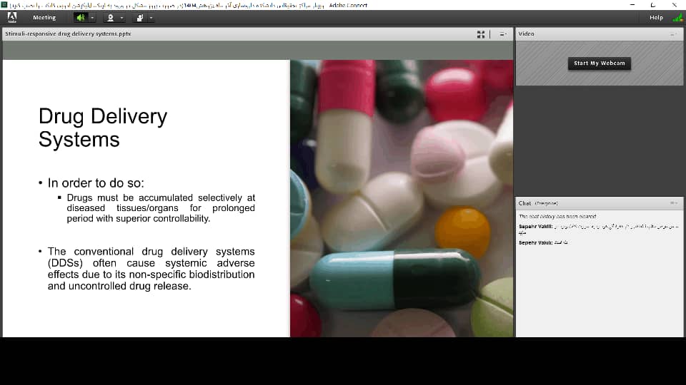 ✅مرکز تحقیقات سیستمهای نوین دارورسانی: وبینار پژوهشی تحت عنوان: «دارورسانی با استفاده از نانوذرات پاسخگو به محرکها» به همت مرکز تحقیقات سیستمهای نوین دارورسانی در تاریخ ۱۹ آذرماه ۱۴۰۴ از ساعت 11 تا 13 برگزار شد. در این جلسه، سخنران محترم، جناب آقای دکتر حامد وکیل زاده، عضو هیئت علمی مرکز تحقیقات سیستمهای نوین دارورسانی ضمن اشاره به کلیات و مزایای استفاده از سیستمهای پاسخگو به محرک در داروسانی هدفمند، به معرفی انواع مختلف این سیستمها (بر اساس محرکهای مورد استفادهی داخلی و خارجی شامل pH، دما، عوامل اکسنده و کاهنده، آنزیمها، نور، میدان مغناطیسی و فراصوت) و مواد و ساختارهای پرکاربرد در هر یک از این سیستمها پرداختند.